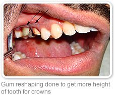 Dr Vineet Sud will carry out the necessary X ray and clinical exam to determine whether the existing tooth structure is suitable for capping procedure. Once it is determined that capping and or bridging can be done then the type of crown and bridges will be discussed with you. All tooth conditions are not suitable for all types of crowns& bridges. Sometimes additional procedures may be needed to modify the available tooth structure to increase the stability and longevity of future crown & bridge. (See crown lengthening procedure)