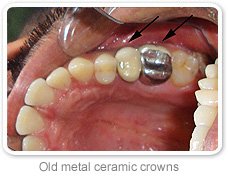 Replacement of old metal crowns with metal free crowns
